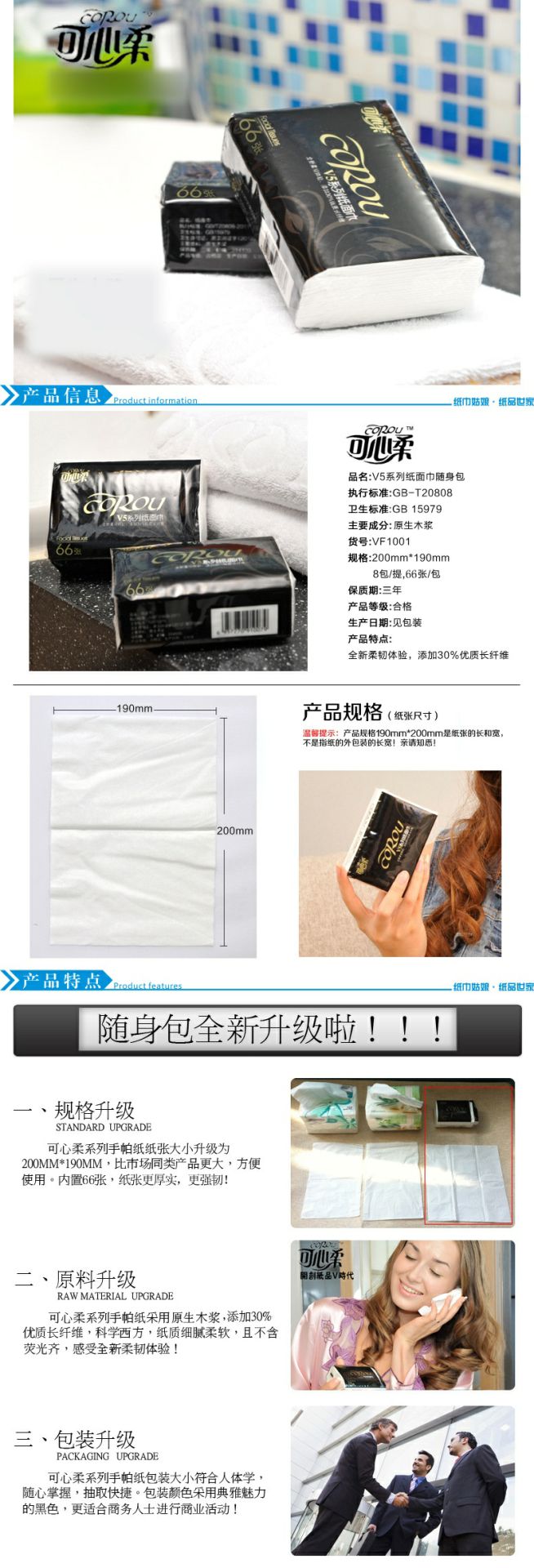 可心柔 V5系列CoRou云柔系列白色木浆40抽
