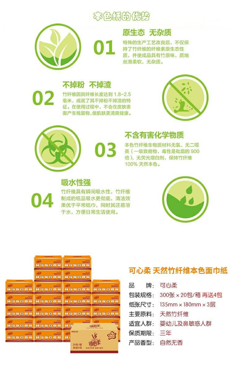 可心柔 V5系列CoRou云柔系列白色木浆40抽