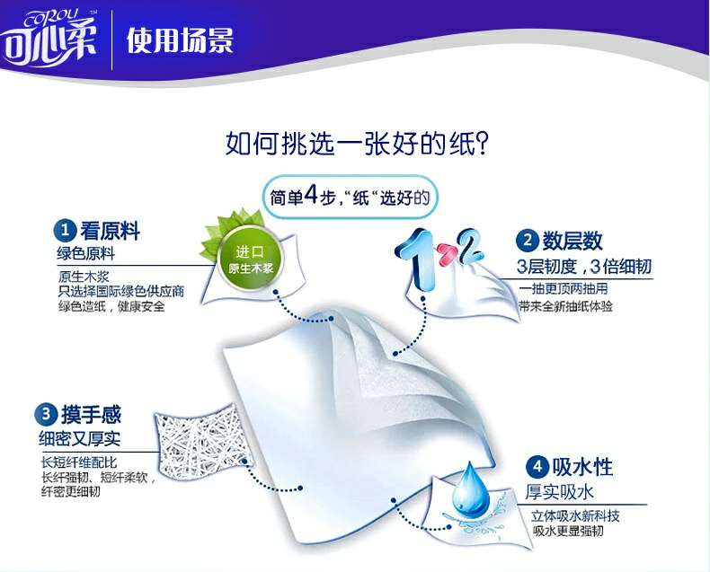 可心柔 V8系列CoRou云柔系列白色木浆110抽